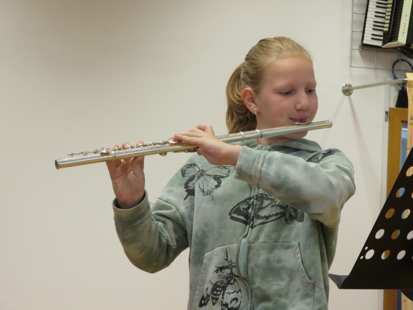 V torek, 21. aprila je učiteljica Andreja, na glasbeno šolo povabila prikupno lutko Zorico, s pomočjo katere sta učencem glasbene pripravnice predstavili balet in inštrumente, ki se jih lahko na naši glasbeni šoli učenci učijo. Na pomoč so jima priskočili mladi nadobudni glasbeniki, ki so se na inštrumentih predstavili s prikupnimi skladbicami. Učenka baleta, pa nas je popeljala v čudoviti svet plesne umetnosti.